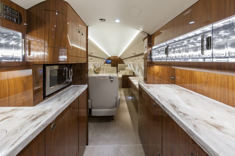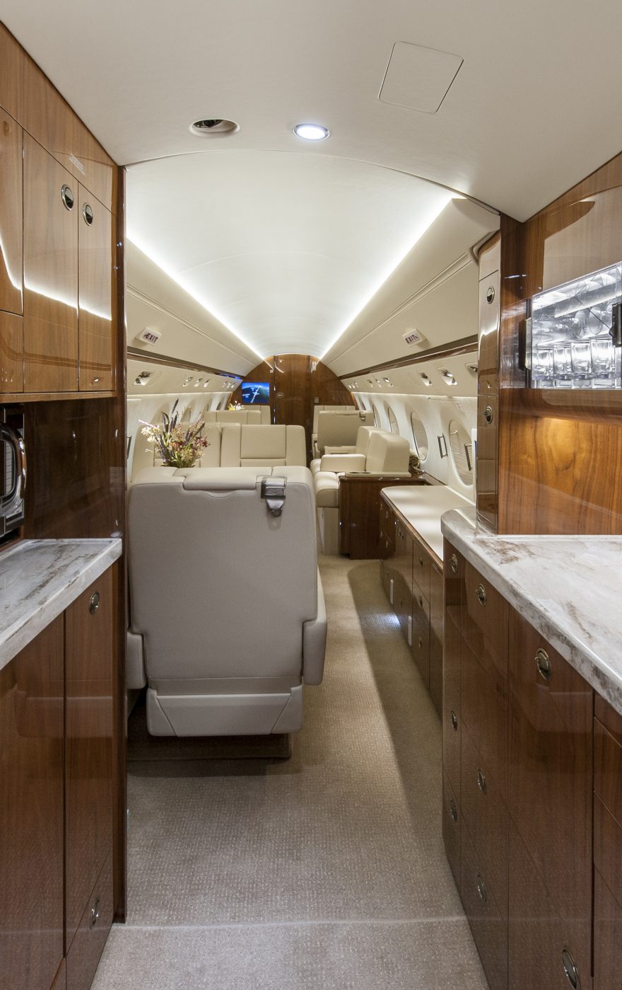 Corian countertops with custom marine edges help prevent spills from reaching cabinetry and carpeting.
